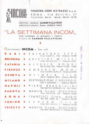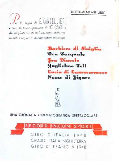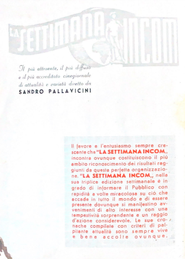 Ogni proiezione era preceduta da brevi intermezzi musicali e da “La Settimana Incom”, cinegiornale che diffondeva notizie di attualità e sport, simbolo della nuova Italia repubblicana.